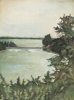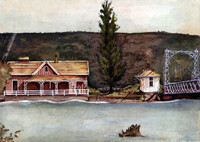 Suspension Bridge crossing a River Possibly the Niagara River but the Bridge is not identified ; -