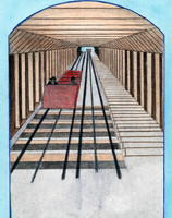 Interior view of the Incline railway and Ferry stairs at Prospect Point U.S.A. [United States of America] Niagara Falls Heritage Foundation Government of Canada Local Initiatives Grant AK 2403-9 1974 - 1975 ; artistic recreation from a stereograph by George Barker in the private collection of Thomas J Mahoney, Buffalo, NY ; -