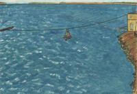Ferry landing U.S [United States] side A row boat pulling into the dock -