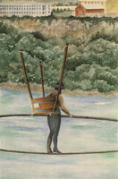 Farini On The Rope With His Washing Machine Clifton Hotel in background, Niagara Gorge and Lower River in foreground -