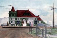 Thomas Barnett's Museum opened 1860 Niagara Falls Heritage Foundation Government of Canada Local Initiatives Grant AK 2403-9 1974 - 1975 ; research by George Seibel ; This building of stone was built in 1859 - 1860 at a cost in excess of $150,000. The grounds adjoining the Museum contained an elaborate garden. Sir Richard Bonnycatle wrote at the time "the only pretty thing on the British side is the Museum ...the result of the indefatigable labours of Mr Barnett. He has gathered together a most interesting collection of animals, shells, coins etc., and has added a garden in which grow all of the choicest plants and flowers of North America and Britain, the English holly, the box, the heath, the ivy; and there is a willow from the St Helena stock all watered by the incessant spray of the Great Fall" excerpted from Anthology and Bibliography of Niagara Falls by Dow ; -