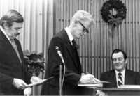 Mayor Grose Thorold Teal Fort Erie Pietz Welland Nissen Port Colborne Campbell municipal affairs minister McKeough Brooks West Lincoln Lambert Wainfleet Goring Niagara-On-The-Lake Reid St Catharines Miller Niagara Falls Willson Grimsby Morgan Bucknall Hatch Marshall Bell Buchanan Mitchelson Martin Weightman Chown McKenzie Cecchini Andres Black