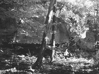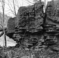This Pothole was formed in the ancient Niagara River Bed, now Wintergreen Flats. Later the rock layers around it were undercut causing it to fall to the terrace below.