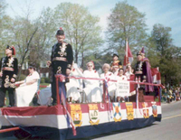 Miss Blossom Festival sitting on Float ; Sheraton - Foxhead Hotel in background