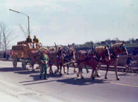 Blossom Festival Parade - brewery wagon and horses on River Road in front of Michael's Inn