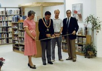 The branch was dedicated by His Excellency Field Marshall The Right Honorable Viscount Alexander of Tunis Governor General of Canada ; L-R: Lady Mayoress W L Houck, Lady Alexander of Tunis, Mayor W L Houck, at the microphone His Excellency Field Marshall The Right Honorable Viscount Alexander of Tunis Governor General of Canada ;