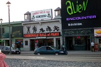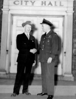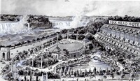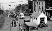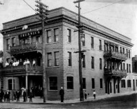 sign in front of building reads The General Brock - 260 rooms with baths - absolutely fireproof - open early summer 1929 - temporary office Erie Ave.- Phone 2990