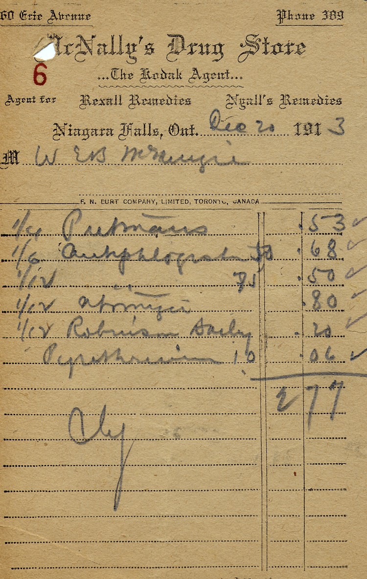 - McNally's Drug Store 60 Erie Ave invoice Dec 20 1913