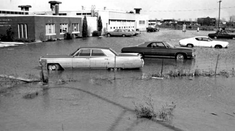 - Flooded parking lot of the St. Catharines Transit Commission on Bunting Road