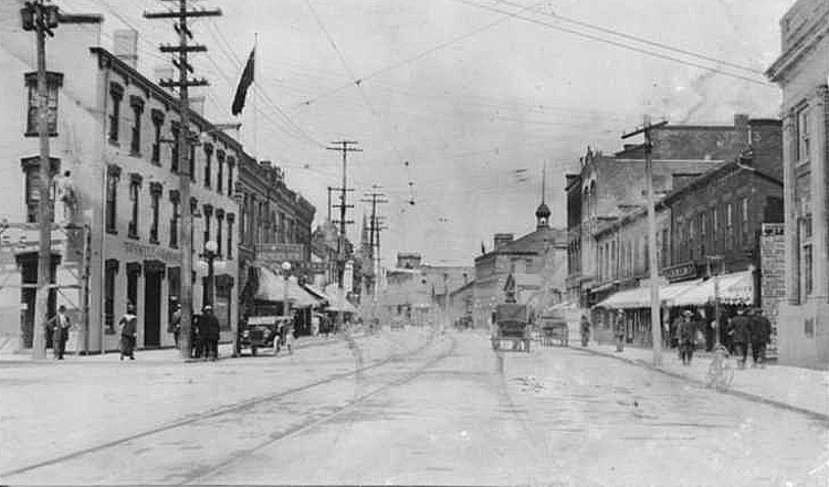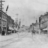 en-CA Russell House left ; W. W. Walton Jewelers 2nd from left ; Grobb Bros. Store 3rd from right ; Geo. ???ate Store: 2nd from right ; Robinson Shoes & Boots Store right ;