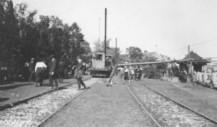 Electric Streetcars, Trolley Power Lines, wind storm, damage