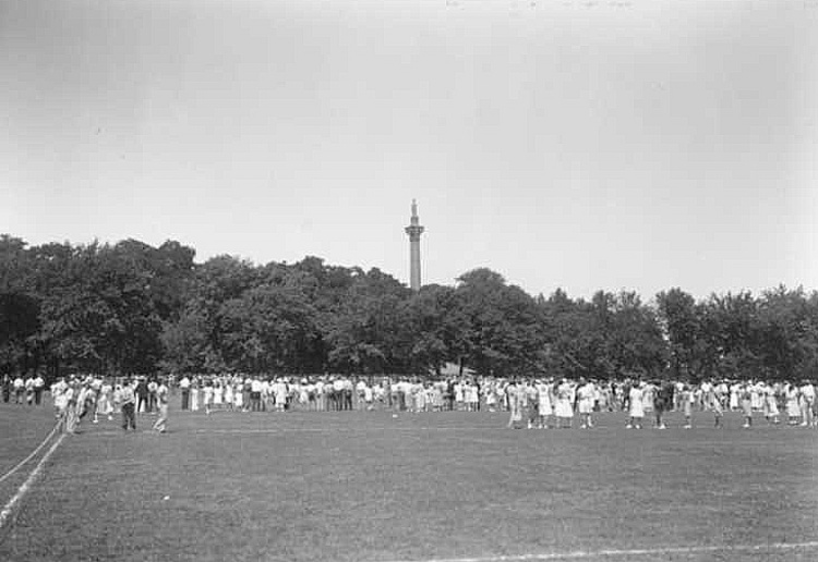 - Social gathering at Queenston Heights Park; Brock's Monument in background