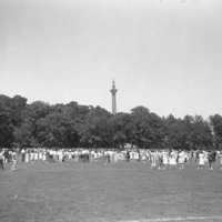 Social gathering at Queenston Heights Park; Brock's Monument in background
