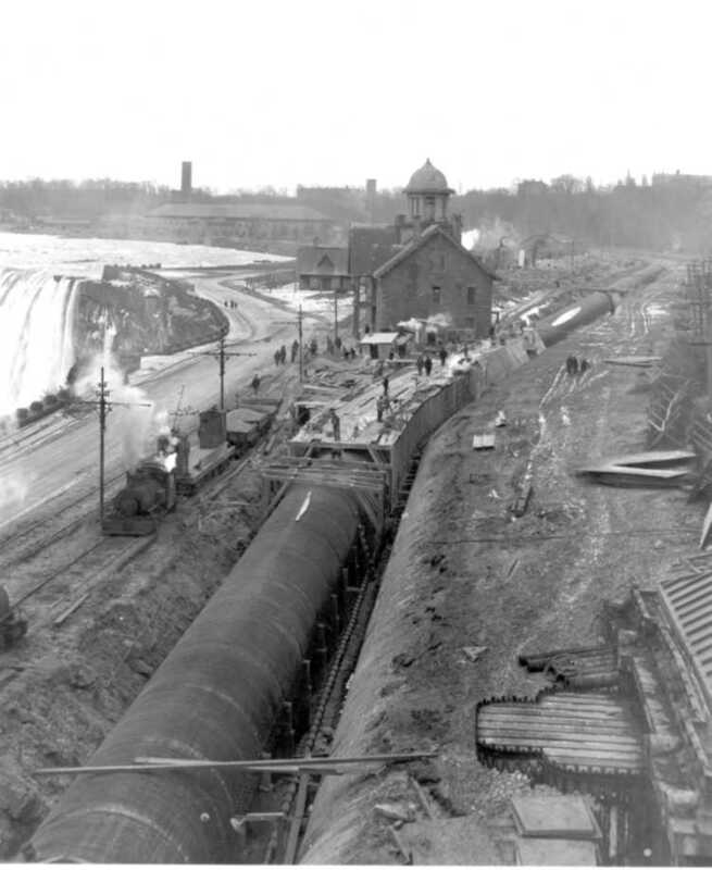 - Horseshoe Falls (left), Table Rock House (centre), Canadian Niagara Power Plant (extreme background) ;