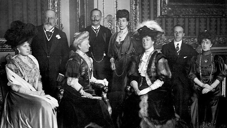 - en-CA Standing; Left to Right: King Edward, Emperor of Germany Queen Alexandra Sitting; Left to Right: The Queen of Spain, Empress of Germany The Queen of Portugal, King of Spain, Queen of Norway