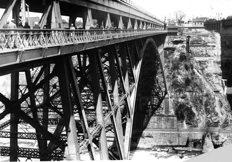 - Cross border shoppers walking to the United States over the Lower Steel Arch Bridge