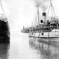 Steam ship Dalhousie City pulling into Port Dalhousie Harbour