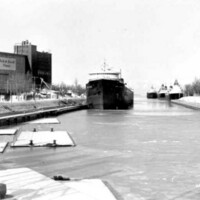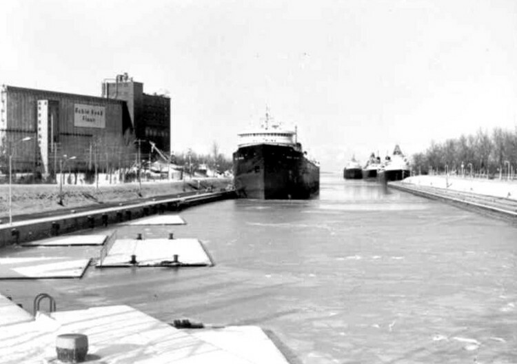 The Red Wing Ship docked in Port Colborne next to the Robin Hood Flour Plant