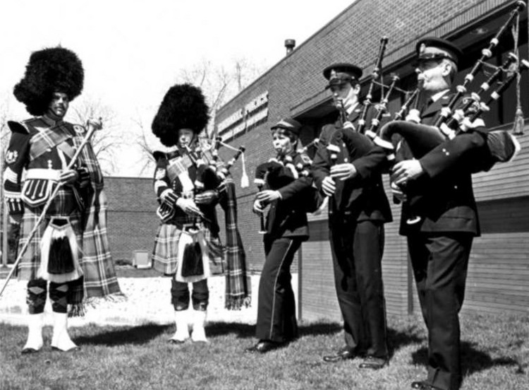 - Niagara Regional Police Bagpipe Band in front of the Police Station on Morrison Street Niagara Falls