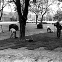 - Landscape workers laying down sod in front of the new Niagara Regional Police Station on Morrison Street