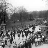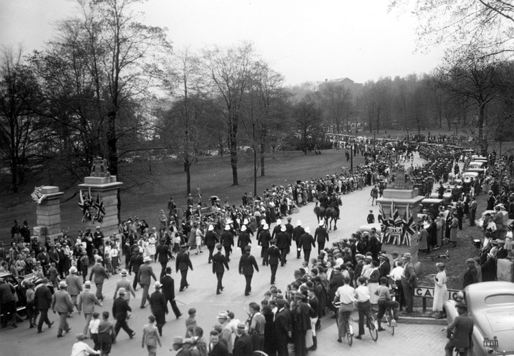 The parade is passing through Mowat Gate into Queen Victoria Park