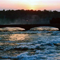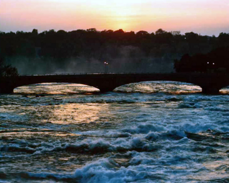 Night view of the Upper Niagara River and the Bridge to Goat Island