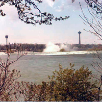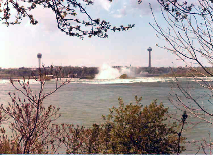 - Upper Niagara River at the Brink of the Horseshoe Falls, Skylon and Minolta Towers in background