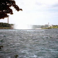 Upper Niagara River near the Brink of the Horseshoe Falls Skylon Tower in background