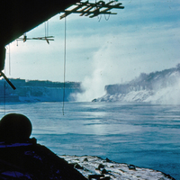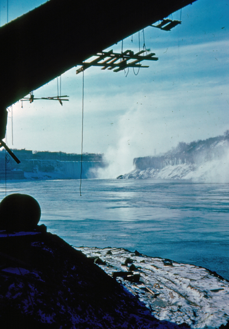 - Construction of the Rainbow Bridge - Horseshoe Falls and the Niagara River in background
