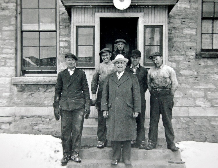 Mr Myer Salit founder of Myer Salit Steel at the factory with his workers