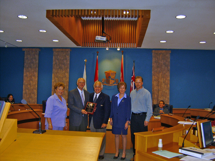 L-R: Hildegard and Horst Peglow ; Mayor Ted Salci ; Bonnie and Stephen Peglow ;