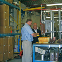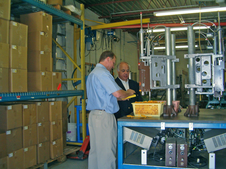 Peglow Tool and Die Inc. - Mayor Ted Salci and owner Stephen Peglow inside the plant