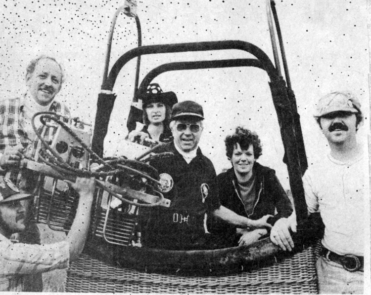 Matt Wiederkehr (centre) who flew a balloon over the Horseshoe Falls
