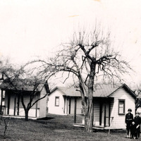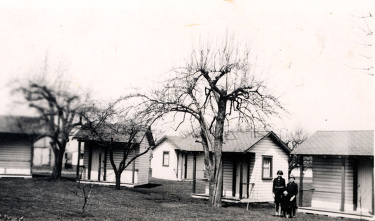 Tourist cabins on Portage Road (?) Betty & Lorna Hindle with cousin Bonnie