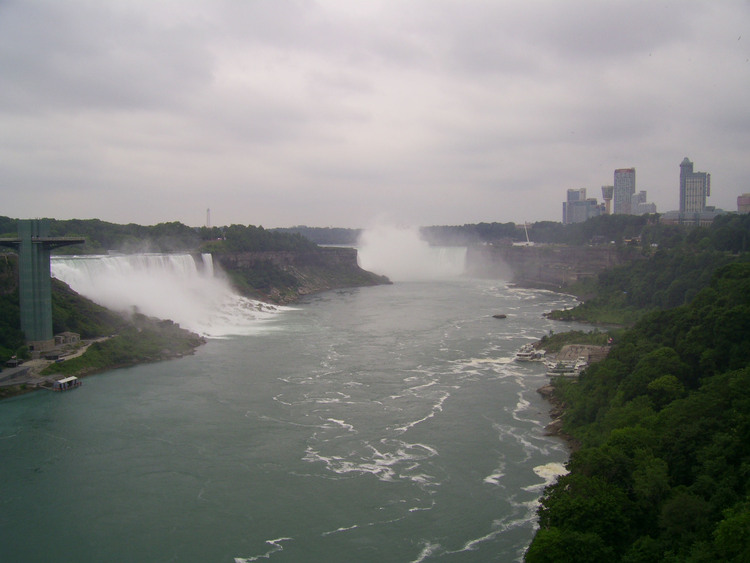 - en-CA Weather conditions in Niagara Falls when the photo was taken: Wind: southwest, 30 km Temp: 25° C Overcast Time: 8:22 a.m. This photo from Rainbow bridge, where concrete meets steel part of bridge.