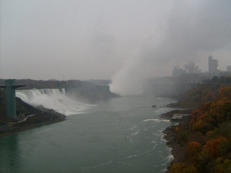 - en-CA Weather conditions in Niagara Falls when the photo was taken: Wind: south southwest, 13 km Temp: 7° C Overcast Time: 8:23 a.m. This photo from Rainbow bridge, where concrete meets steel part of bridge.