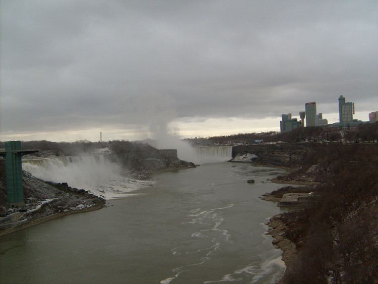 - en-CA Weather conditions in Niagara Falls when the photo was taken: Wind: northwest, 22 km Temp: -4° C Light snow Time: 8:40 a.m. This photo from Rainbow bridge, where concrete meets steel part of bridge.