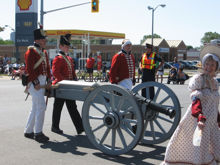 en-CA City of Niagara Falls Museum staff in War of 1812 costumes with a replica of a cannon in the Canada Day Parade on Morrison Street near Optimist Park