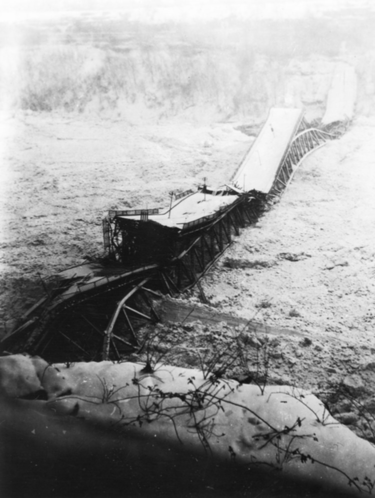 - en-CA On January 27, 1938 an ice jam, exerting enormous pressure on the abutments of the Falls View Bridge, caused it to collapse onto the ice bridge below.