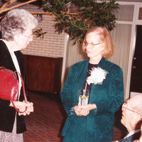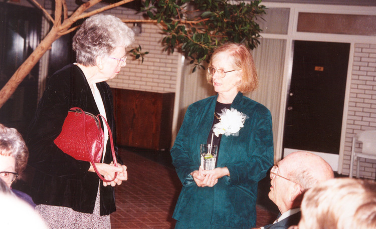 - en-CA Claire Beckermann's retirement dinner held by the Niagara Falls Public Library Board. Left to right: Dorothy Van Slyke and Claire Beckermann