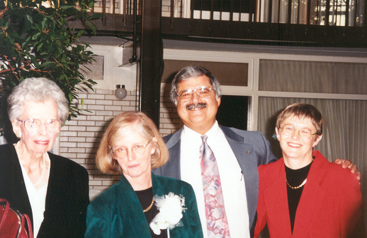 - en-CA Claire Beckermann's retirement dinner held by the Niagara Falls Public Library Board. Left to right: Dorothy Van Slyke, Claire Beckermann, Joe Longo and Anne Andres-Jones