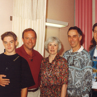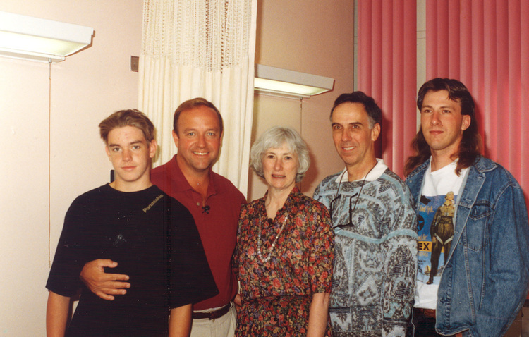 - en-CA Roger Woodward with his son Christopher and nurse Eleanor Weaver in the Greater Niagara General Hospital where he was taken after his plunge over the Horseshoe Falls on July 9, 1960. Two others are unidentified.