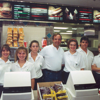- en-CA Roger Woodward with family returns to Niagara Falls on the 30th anniversary of his plunge over the Horseshoe falls. Roger with the staff of fast food restaurant at Table Rock House.