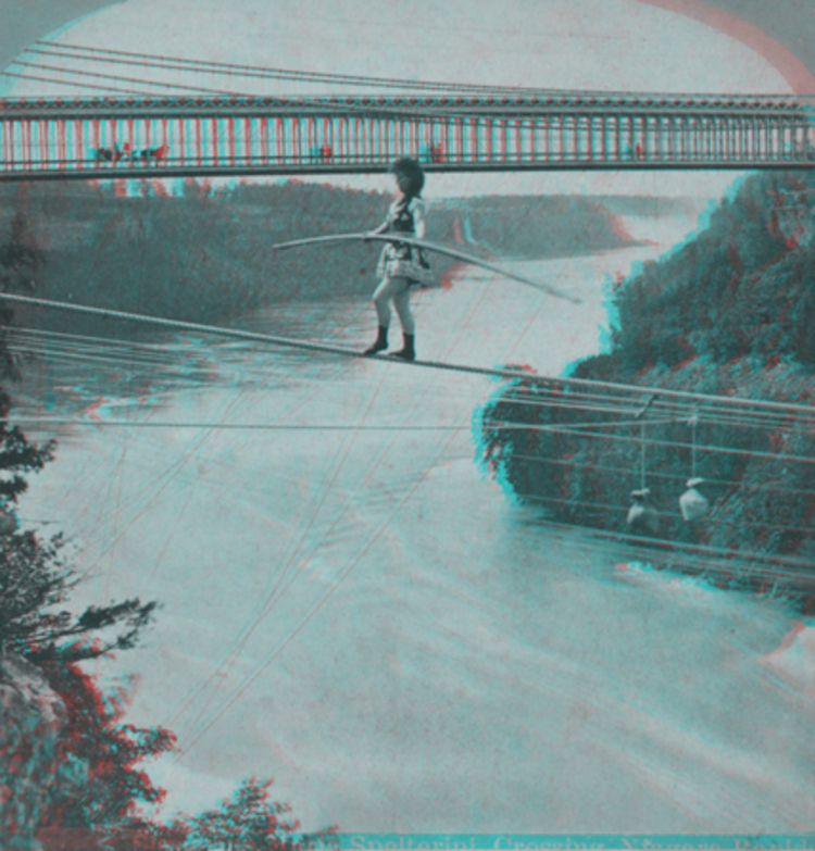 en-CA Signorina Maria Spelterini crossing the Niagara gorge above the rapids.