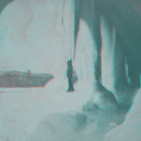 en-CA Person standing under an ice tower on the American side of the Niagara gorge.