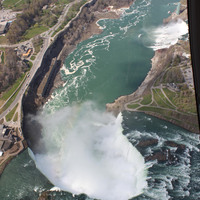 - en-CA An aerial view of the Horseshoe Falls, the American Falls, the Niagara River.The Rainbow Bridge can be seen in the background.