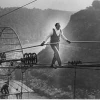 - Henri Rechatin walking a tight rope on the wires of the Spanish Aero Car Niagara Falls