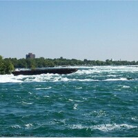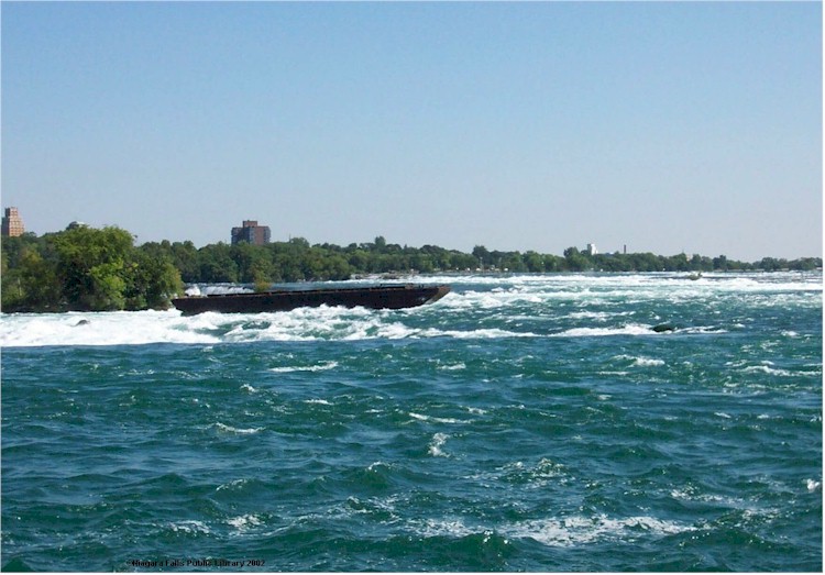 - en-CA The stranded scow lying in the Upper Rapids has been a fixture since August 6, 1918. It broke loose while being towed by the tug Hassayampa, after the tug went aground in the American Channel opposite Port Day, less than a mile above the Falls. ...a line was shot out from the top of the Toronto Power House. Attempts were made to rig a breeches buoy, but the lines became fouled and it was not until "Red Hill" volunteered his services that it was possible to bring the men to shore. Niagara Falls, Canada : a history of the City and the world famous beauty spot