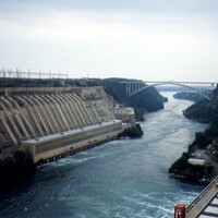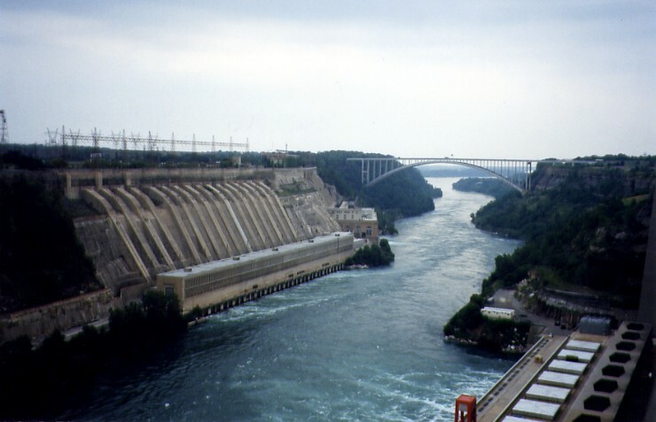 - en-CA Queenston-Lewiston Bridge is in background, Sir Adam Beck #2 is in the foreground, Sir Adam Beck #1 can be seen in background past the square building at the bottom of photograph