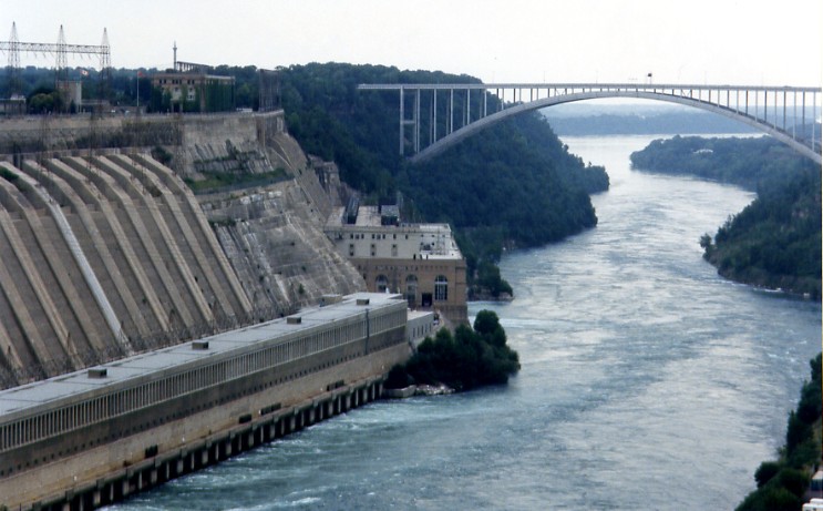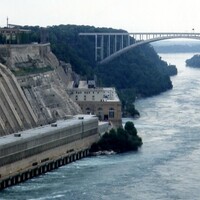 - en-CA Queenston-Lewiston Bridge is in background, Sir Adam Beck #2 is in the foreground, Sir Adam Beck #1 can be seen in background past the square building at the bottom of photograph